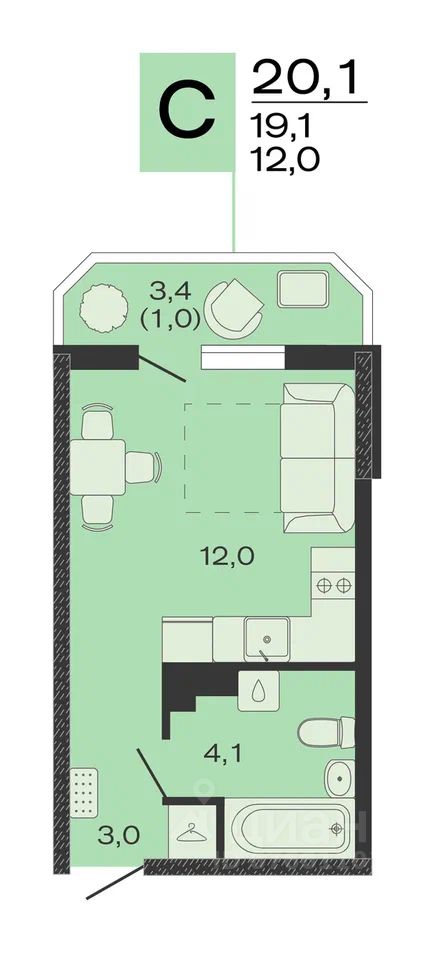 В продаже квартира в жилом комплексе "Дзенпарк" от застройщика ГК "Лендекс"!