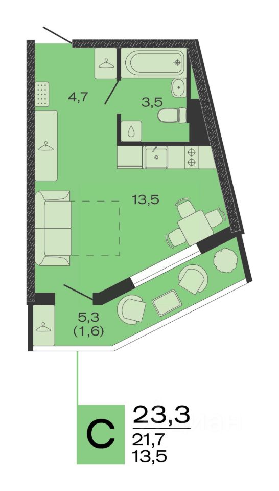 Общая площадь23,3 м²