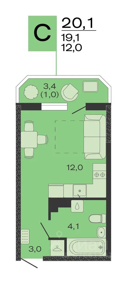 Общая площадь20,1 м²