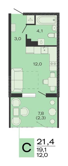 Общая площадь21,4 м²