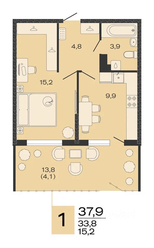 Общая площадь37,9 м²