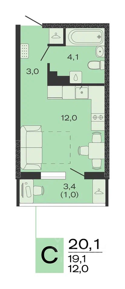 Общая площадь20,1 м²