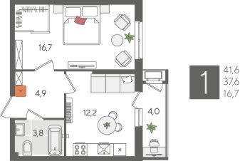 В продаже 1-комнатная квартира от застройщика! ЖК "Рекорд" 2 очередь, г. Краснодар, Литер 1 Срок сдачи: 4 кв. 2026, общей площадью 41.6 кв.м., на 2 этаже.