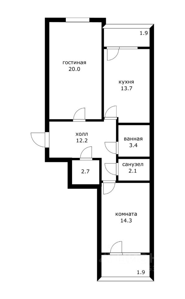 В квартире большая прихожая 12 кв.м., зал 20 кв.м., кухня 14 кв.м., спальня 14 кв.м., раздельный санузел, есть отдельный гардероб 2,7 кв.м. Планировка квартиры на две стороны дома, два балкона (из кухни и комнаты) застеклены. Выполнена качественная пред чистовая отделка от застройщика, что позволит сделать ремонт именно на Ваш вкус.