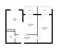 Удобная планировка квартиры, просторные комнаты, кухня, балкон, совмещенный санузел.