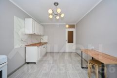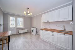 Это лучшая планировка в этих домах: кухня более 19 квадратных метров, 3 комнаты, большая ленточная лоджия, раздельный санузел, удобная прихожая и просторная гардеробная комната. Окна из кухни-гостиной и спальни выходят во двор, а окна лоджии смотрят на зеленую придомовую территорию.