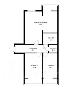 Квартира просторная. Имеет 2 изолированные спальни (16,1 кв.м. и 16,4 кв.м.), большую кухню-гостиную - 30 кв.м., ванная - 5,3 кв.м., с/у - 2,3 кв.м.