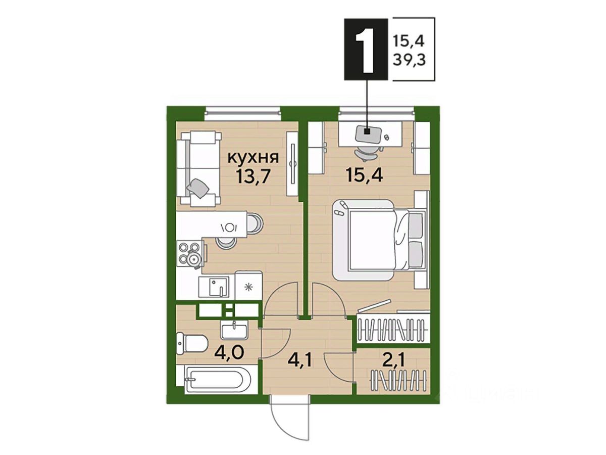 В продаже 1-комнатная квартира от застройщика! Мкр. "DOGMA PARK" г. Краснодар, Литер 18 Срок сдачи: 4 кв. 2027, общей площадью 39.3 кв.м., на 15 этаже.