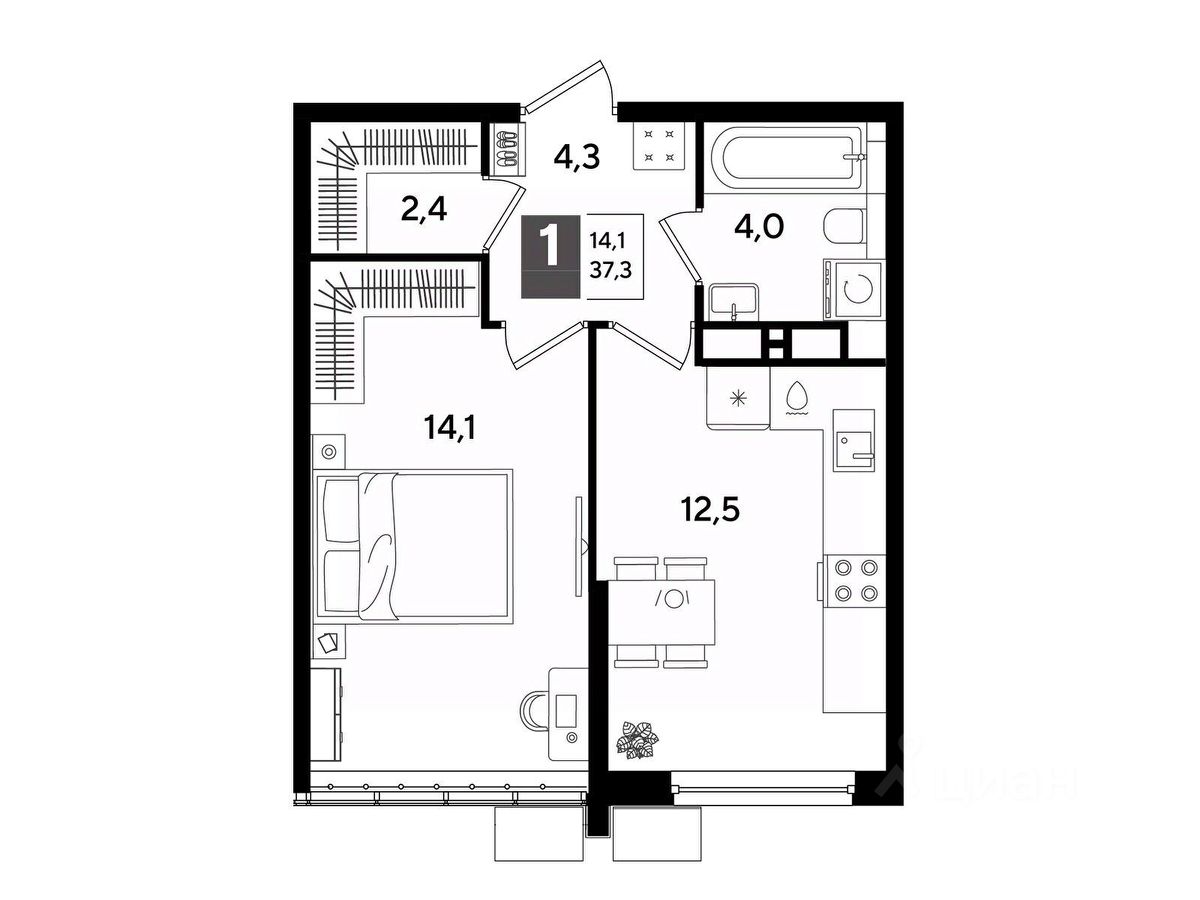 В продаже 1-комнатная квартира от застройщика! Мкр. "DOGMA PARK" г. Краснодар, Литер 16 Срок сдачи: 4 кв. 2027, общей площадью 37.3 кв.м., на 10 этаже.