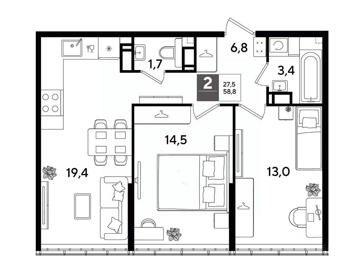 В продаже 2-комнатная квартира от застройщика! Мкр. "DOGMA PARK" г. Краснодар, Литер 22 Срок сдачи: 4 кв. 2027, общей площадью 58.8 кв.м., на 16 этаже.