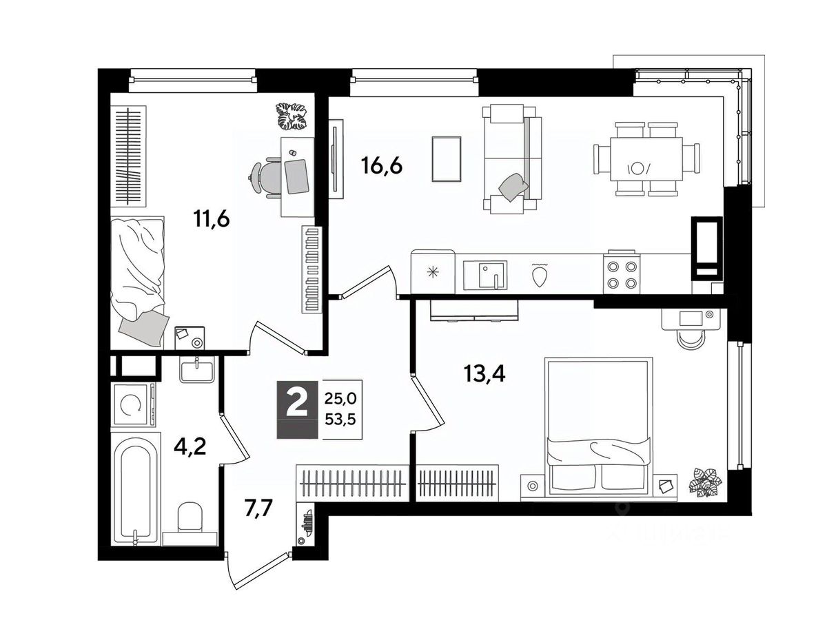 В продаже 2-комнатная квартира от застройщика! Мкр. "DOGMA PARK" г. Краснодар, Литер 20 Срок сдачи: 4 кв. 2027, общей площадью 53.5 кв.м., на 14 этаже.