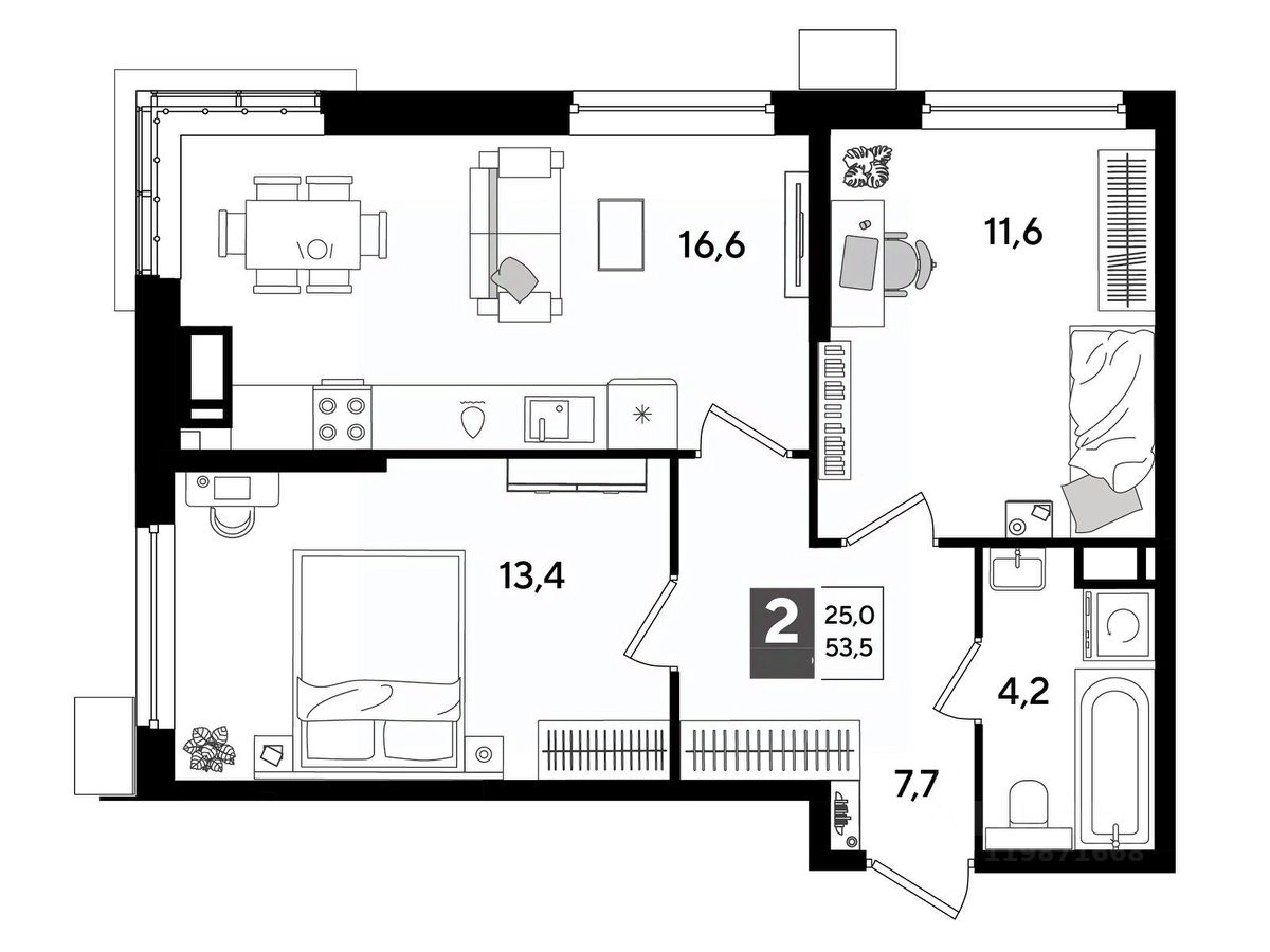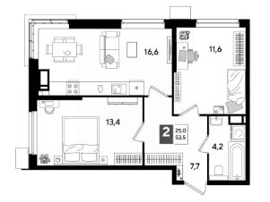 В продаже 2-комнатная квартира от застройщика! Мкр. "DOGMA PARK" г. Краснодар, Литер 34 Срок сдачи: 4 кв. 2027, общей площадью 53.5 кв.м., на 14 этаже.