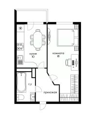 Большая комната и кухня, просторная прихожая, позволяющая оборудовать вместительную гардеробную, санузел совмещенный, есть балкон.