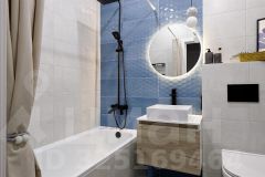 Спальная зона отделена от жилой части, что позволяет создать атмосферу уединения и комфорта. В ванной комнате установлена современная сантехника, а также стильная мебель и аксессуары, что добавляет изысканности.