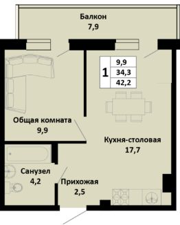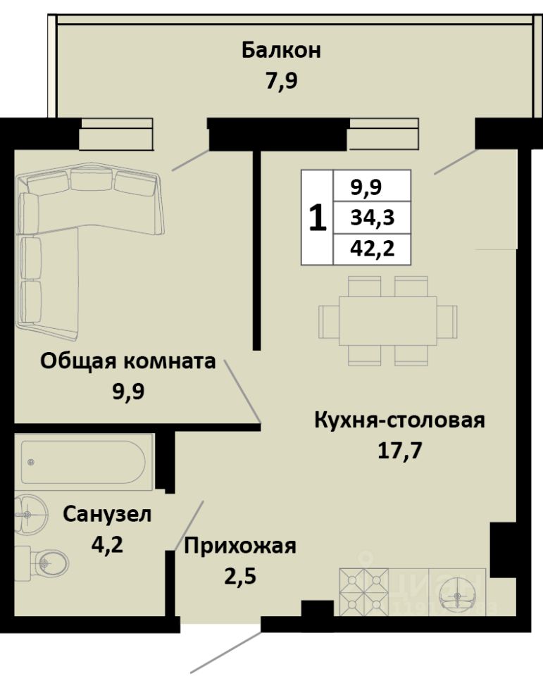 Продаётся 1-комнатная квартира в сданном доме (Литер 1), срок сдачи: IV-кв. 2025, общей площадью 40.67 кв.м., на 4 этаже. Новый жилой дом от застройщика "СЗ Кубаньновострой" расположен по адресу: Россия, Краснодарский край, Динской район, Южно-Кубанское сельское поселение, посёлок Южный, Северная улица
