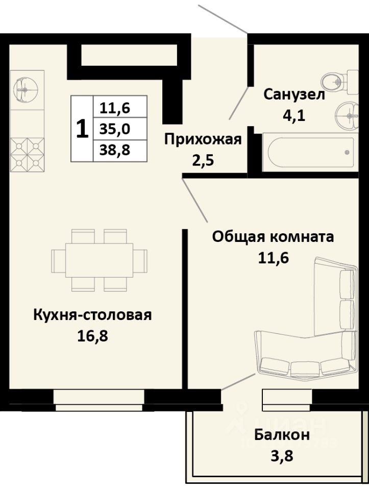 Продаётся 1-комнатная квартира в сданном доме (Литер 2), срок сдачи: IV-кв. 2025, общей площадью 38.2 кв.м., на 2 этаже. Новый жилой дом от застройщика "СЗ Кубаньновострой" расположен по адресу: Россия, Краснодарский край, Динской район, Южно-Кубанское сельское поселение, посёлок Южный, Северная улица