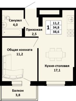 Продаётся 1-комнатная квартира в сданном доме (Литер 2), срок сдачи: IV-кв. 2025, общей площадью 37.5 кв.м., на 2 этаже. Новый жилой дом от застройщика "СЗ Кубаньновострой" расположен по адресу: Россия, Краснодарский край, Динской район, Южно-Кубанское сельское поселение, посёлок Южный, Северная улица