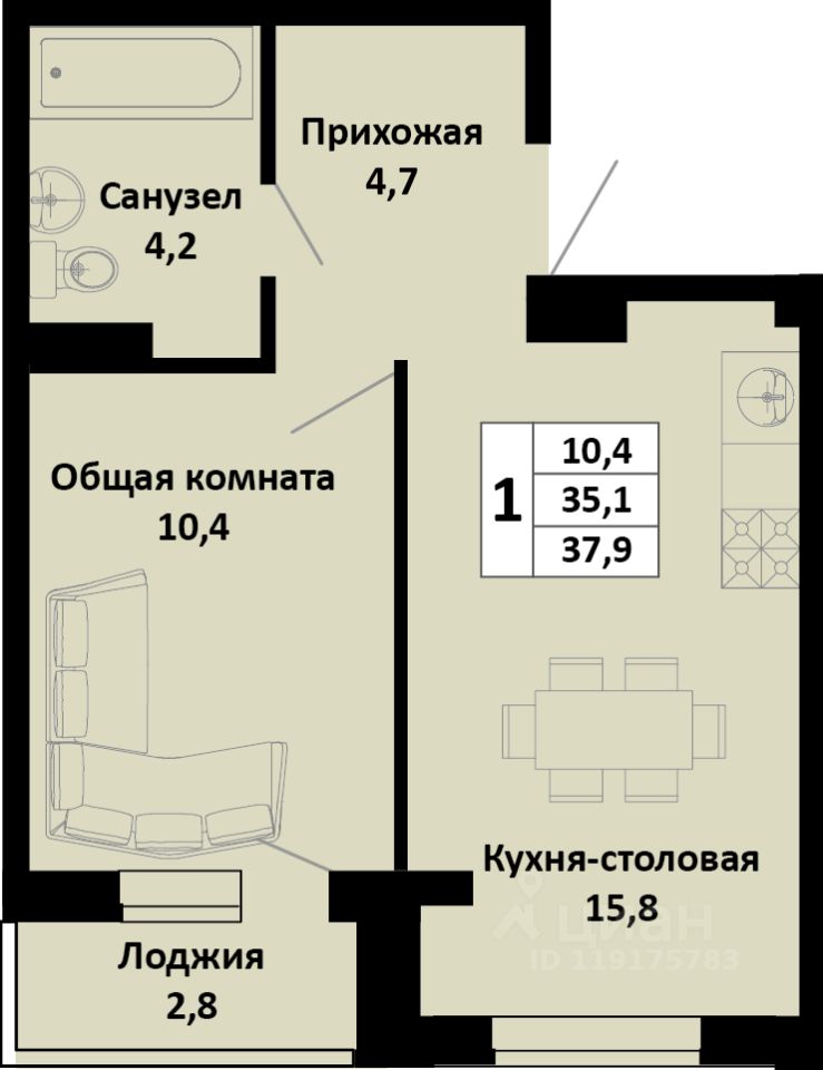 Продаётся 1-комнатная квартира в сданном доме (Литер 2), срок сдачи: IV-кв. 2025, общей площадью 38.4 кв.м., на 4 этаже. Новый жилой дом от застройщика "СЗ Кубаньновострой" расположен по адресу: Россия, Краснодарский край, Динской район, Южно-Кубанское сельское поселение, посёлок Южный, Северная улица
