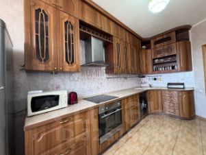 Из мебели остаются кухня с электроплитой и вытяжкой. В комнате остается 5 метровая деревянная стенка.