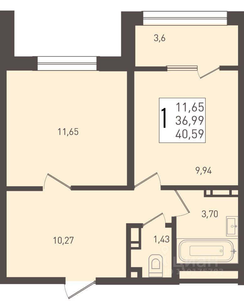 Общая площадь40,59 м²