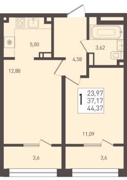 Продаётся 1-комнатная квартира в строящемся доме (Литер 2), срок сдачи: III-кв. 2026, общей площадью 44.37 кв.м., на 7 этаже. Новый жилой дом от застройщика "РУТ" расположен по адресу город Краснодар, 1-й Лиговский проезд.