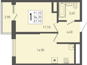 Продаётся 1-комнатная квартира в сданном доме (Литер 2), срок сдачи: I-кв. 2025, общей площадью 37.1 кв.м., на 4 этаже. Новый жилой комплекс "Огурцы" от застройщика "Партнер Инвест Кубань" расположен по адресу Краснодар, посёлок Берёзовый, Целиноградская улица.