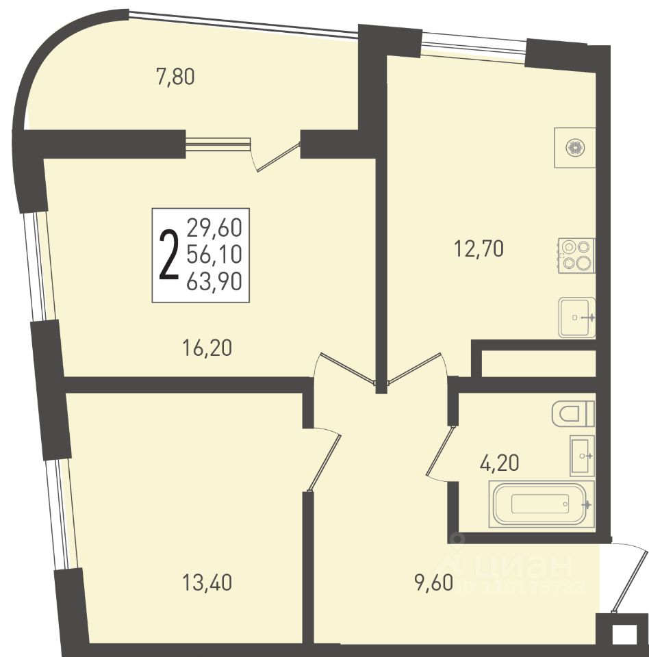 Продаётся 2-комнатная квартира в сданном доме (Литер 2), срок сдачи: I-кв. 2025, общей площадью 63.9 кв.м., на 19 этаже. Новый жилой комплекс "Огурцы" от застройщика "Партнер Инвест Кубань" расположен по адресу Краснодар, посёлок Берёзовый, Целиноградская улица.