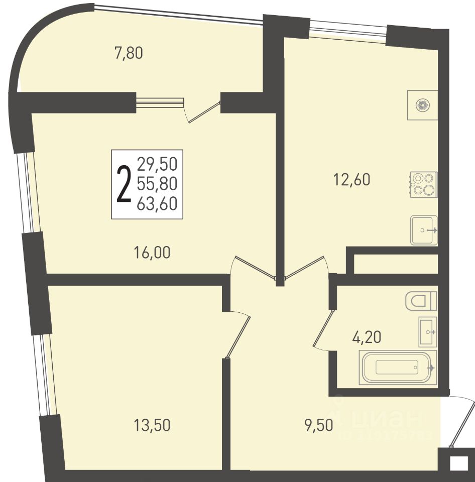 Продаётся 2-комнатная квартира в сданном доме (Литер 2), срок сдачи: I-кв. 2025, общей площадью 63.6 кв.м., на 21 этаже. Новый жилой комплекс "Огурцы" от застройщика "Партнер Инвест Кубань" расположен по адресу Краснодар, посёлок Берёзовый, Целиноградская улица.