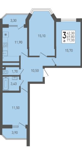 Продаётся 3-комнатная квартира в сданном доме (Литер 1), срок сдачи: I-кв. 2025, общей площадью 77 кв.м., на 3 этаже. Новый жилой комплекс "Огурцы" от застройщика "Партнер Инвест Кубань" расположен по адресу Краснодар, посёлок Берёзовый, Целиноградская улица.