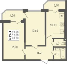 Продаётся 2-комнатная квартира в сданном доме (Литер 1), срок сдачи: I-кв. 2025, общей площадью 60.7 кв.м., на 21 этаже. Новый жилой комплекс "Огурцы" от застройщика "Партнер Инвест Кубань" расположен по адресу Краснодар, посёлок Берёзовый, Целиноградская улица.