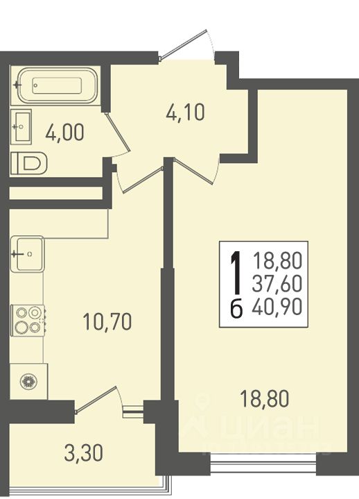 Продаётся 1-комнатная квартира в сданном доме (Литер 1), срок сдачи: I-кв. 2025, общей площадью 40.9 кв.м., на 6 этаже. Новый жилой комплекс "Огурцы" от застройщика "Партнер Инвест Кубань" расположен по адресу Краснодар, посёлок Берёзовый, Целиноградская улица.