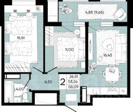 Общая площадь58,07 м²