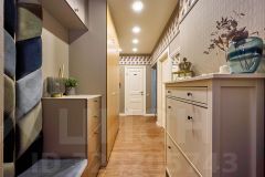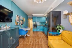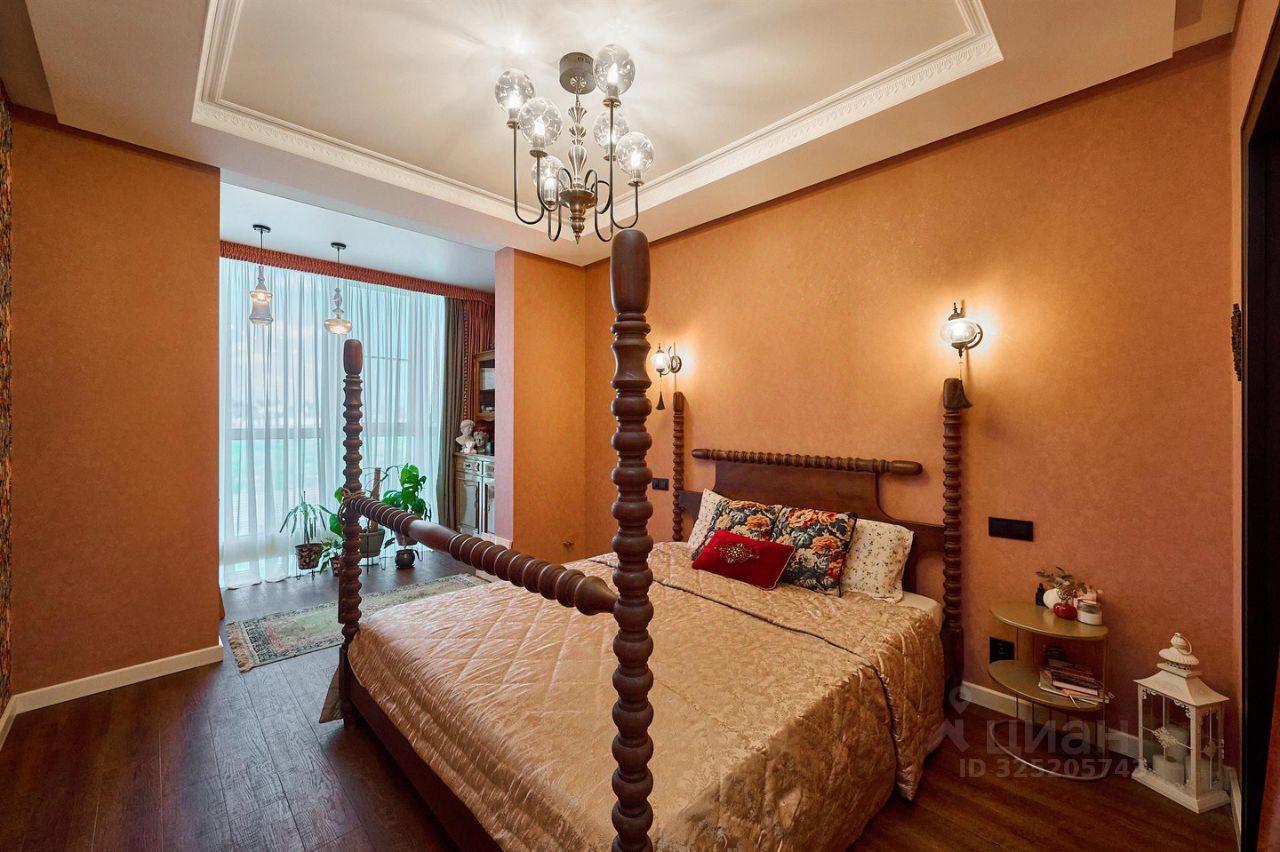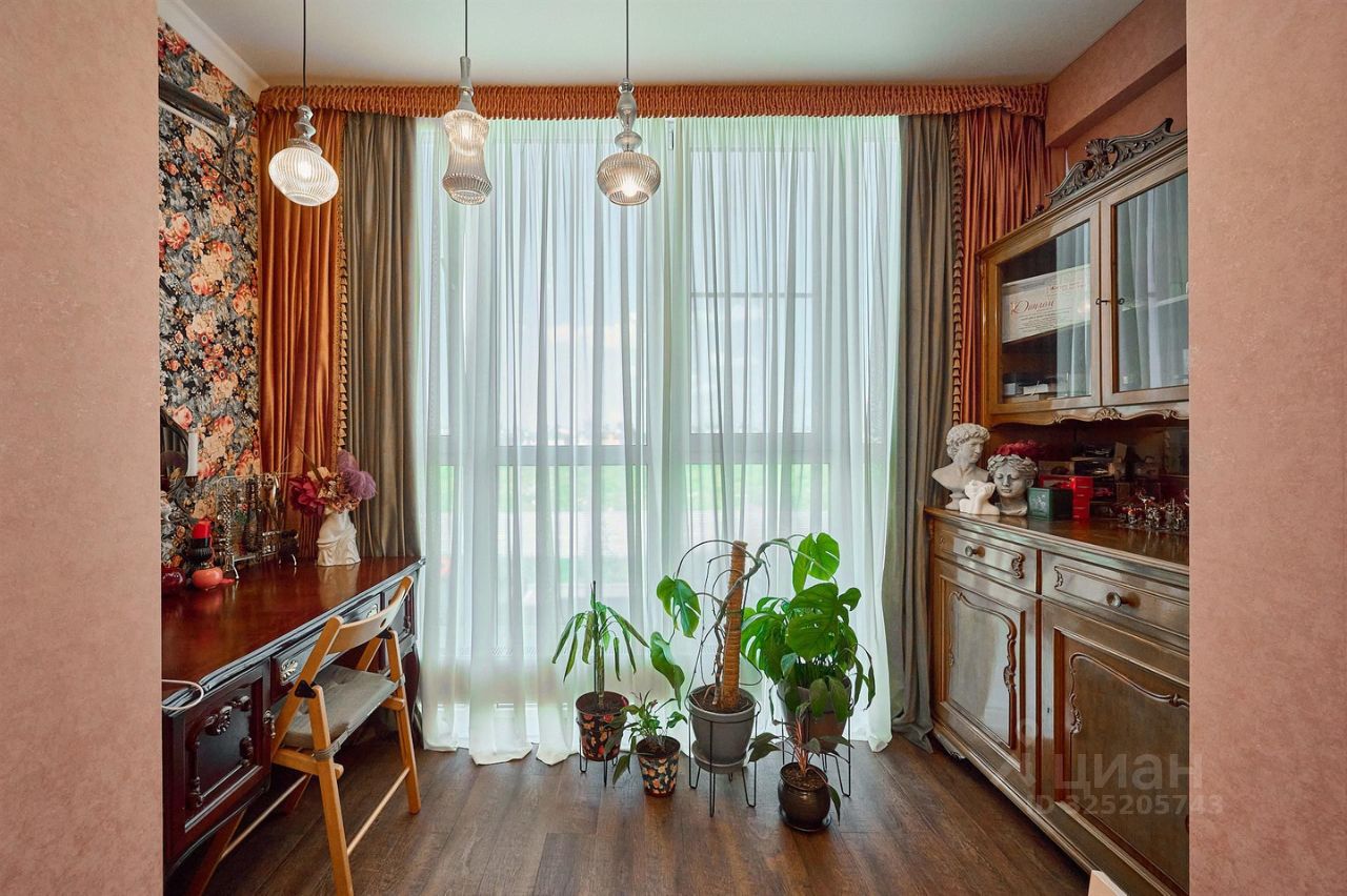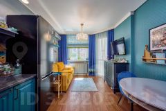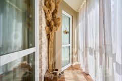 В квартире выполнен дизайнерский ремонт по индивидуальному проекту. Балкон совмещен с пространством комнаты. Около панорамных окон в комнате — теплые электрические полы. Везде установлен натяжной потолок. Все материалы высокого качества, а каждая деталь тщательно продумана.