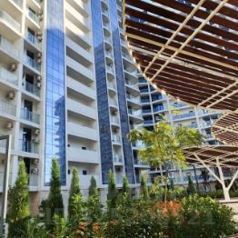 В жилом комплексе свой собственный пляж с лежакими.