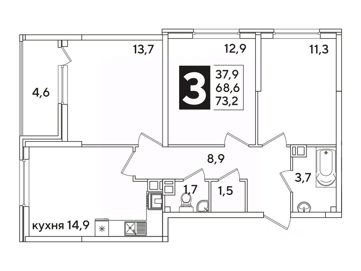 Площадь кухни14,9 м²