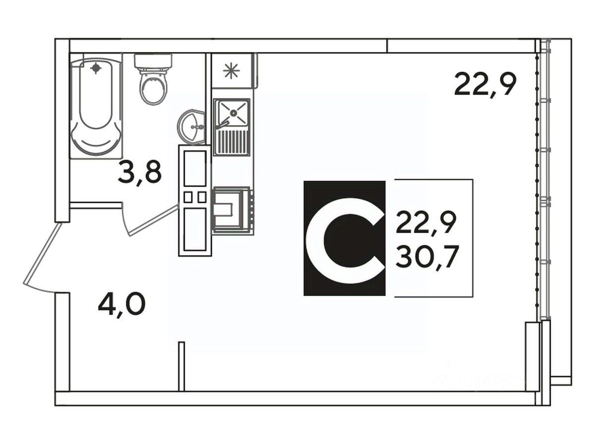 Общая площадь30,9 м²