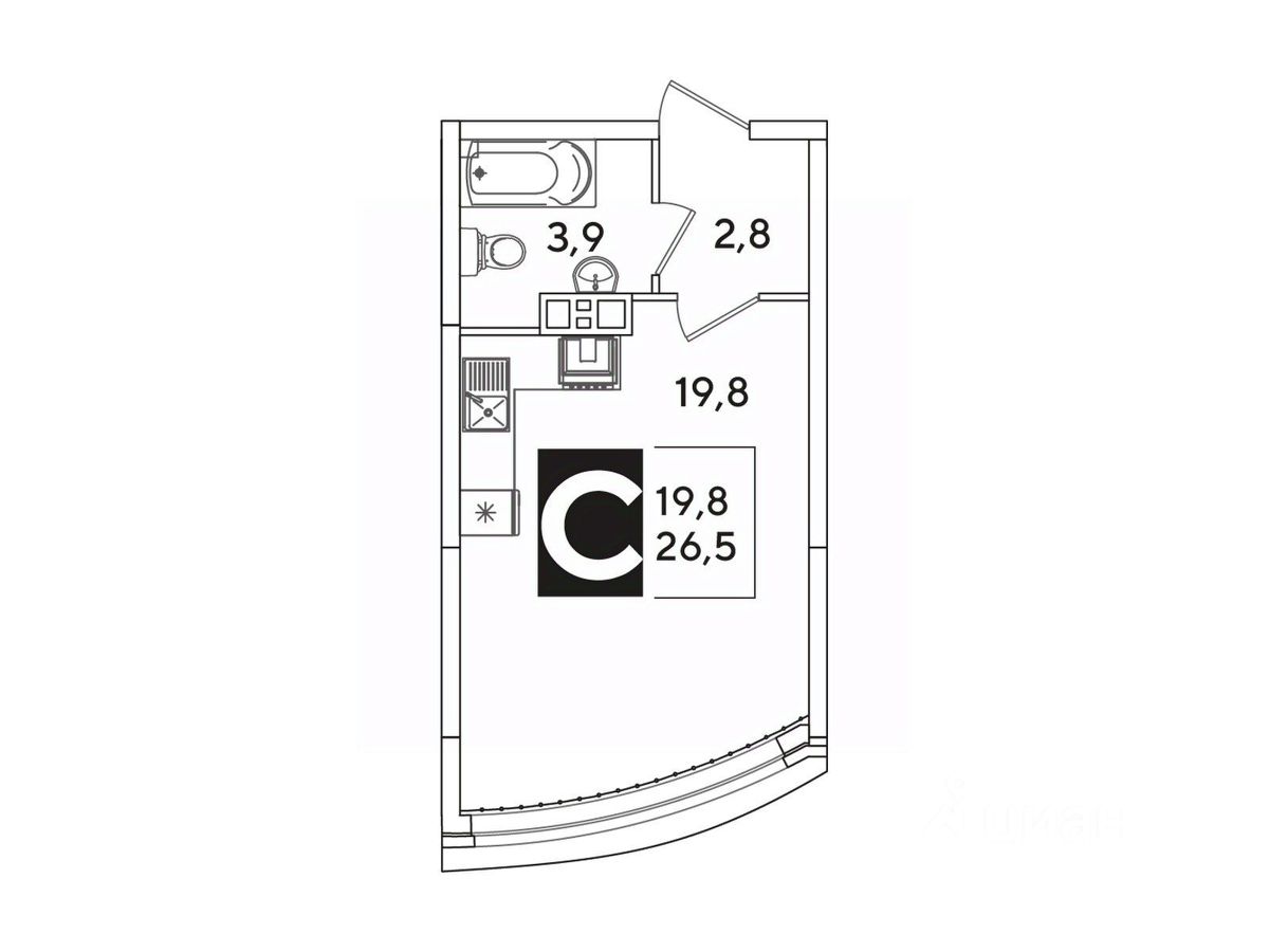 Общая площадь26,5 м²