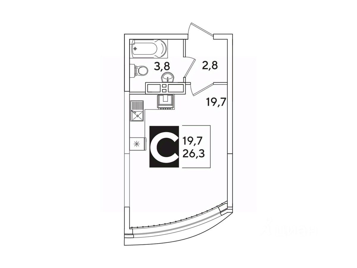 Общая площадь26,3 м²