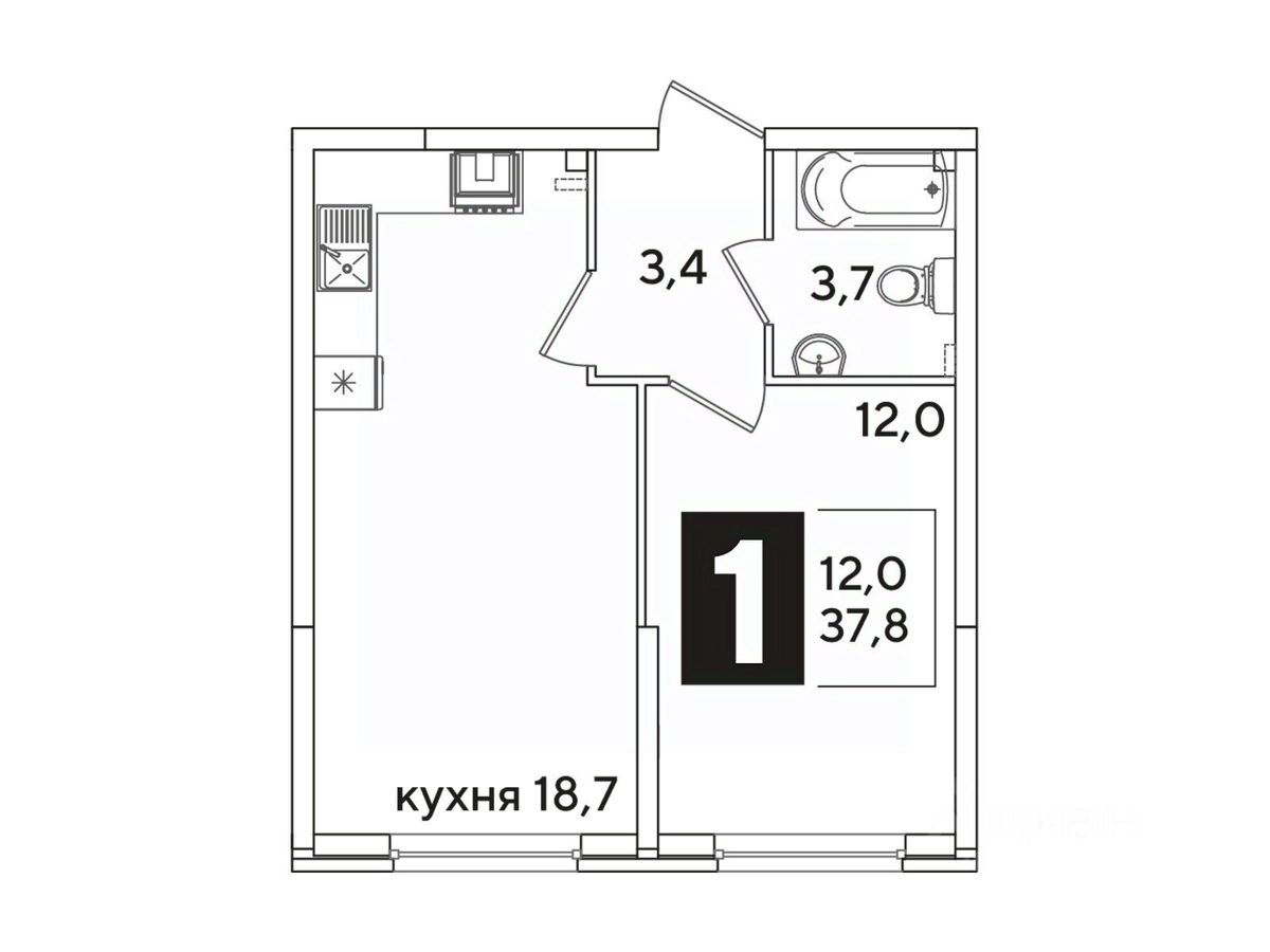 Общая площадь37,8 м²
