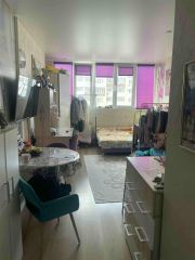 Студия просторная и светлая, с ремонтом. Есть лоджия, где можно оборудовать рабочий кабинет или зону отдыха. Из окна открывается красивый пейзаж на озелененные территории и аккуратные улицы. Высота потолков в комнатах 2,7 метра.
