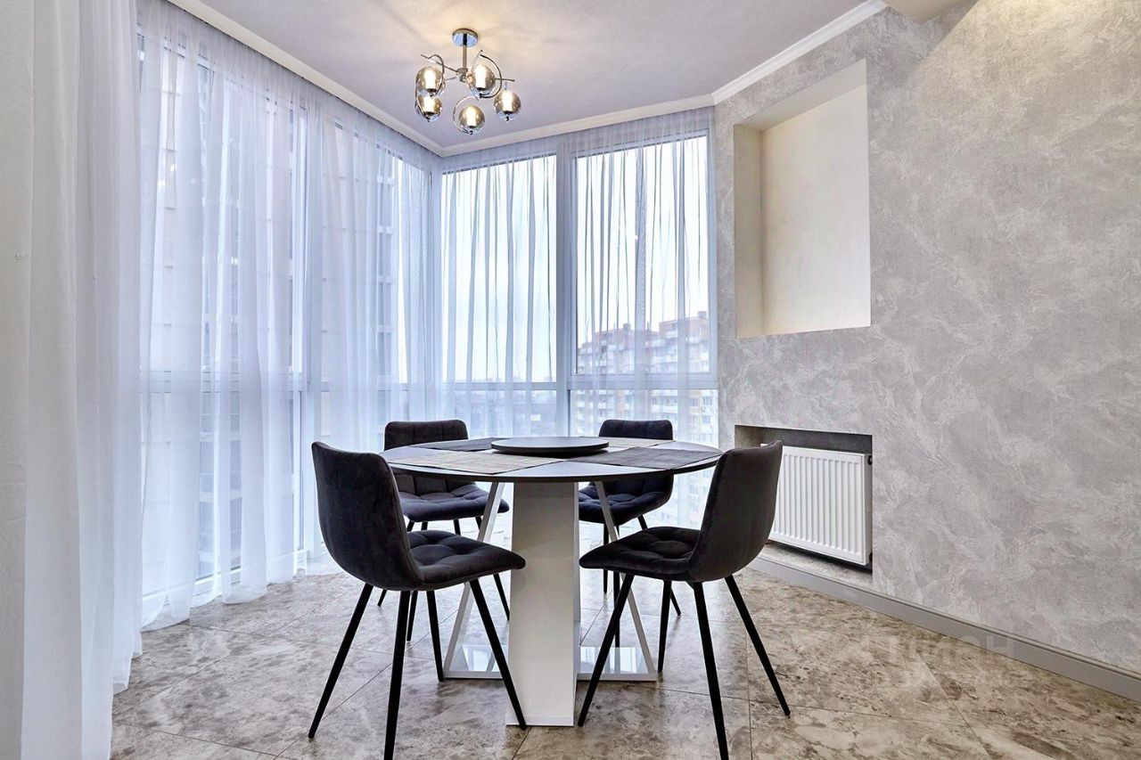Квартира с дизайнерским ремонтом, остается мебель и техника, витражное остекление на кухне, планировка квартиры: комната -14.9 м2,кухня гостиная-22 м2, общая площадь квартиры 53 м2