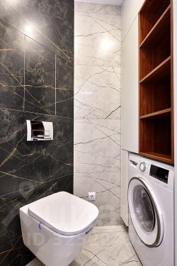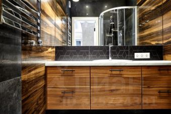 В санузле и ванной комнате установлена система "теплый пол", дорогая сантехника от импортных производителей. Столешница под раковину, зеркало и светильники выполнены на заказ по индивидуальному эскизу.