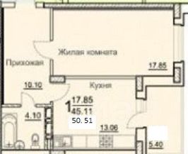 Общая площадь по выписке ЕГРН — 45,2 кв. м.(одна из самых больших и удачных планировок в этом доме). Фактическая площадь с балконом 50,5 кв.м.
