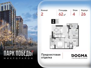 Срок сдачи: 1 кв. 2026, общей площадью 62 кв.м., на 4 этаже.