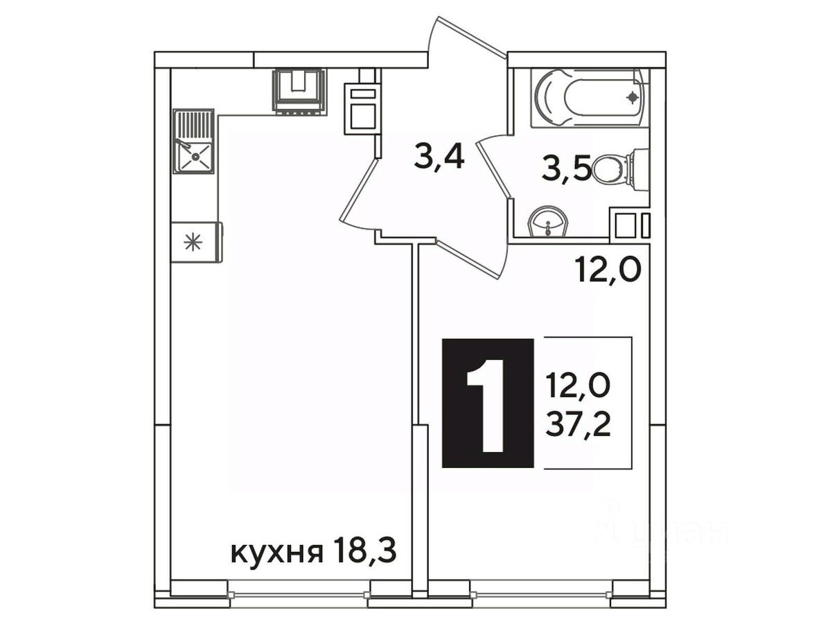 Общая площадь37,2 м²