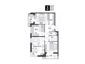 Срок сдачи: 1 кв. 2026, общей площадью 84.9 кв.м., на 12 этаже.
