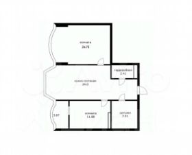 Функциональная планировка: две комнаты, просторная кухня-гостиная 24 м², дополнительная гостиная 24,75 м², уютная спальня 11,88 м², комфортная лоджия 3,07 м² и гардеробная 2,41 м².
