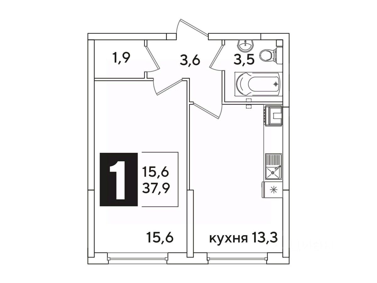 Общая площадь37,9 м²