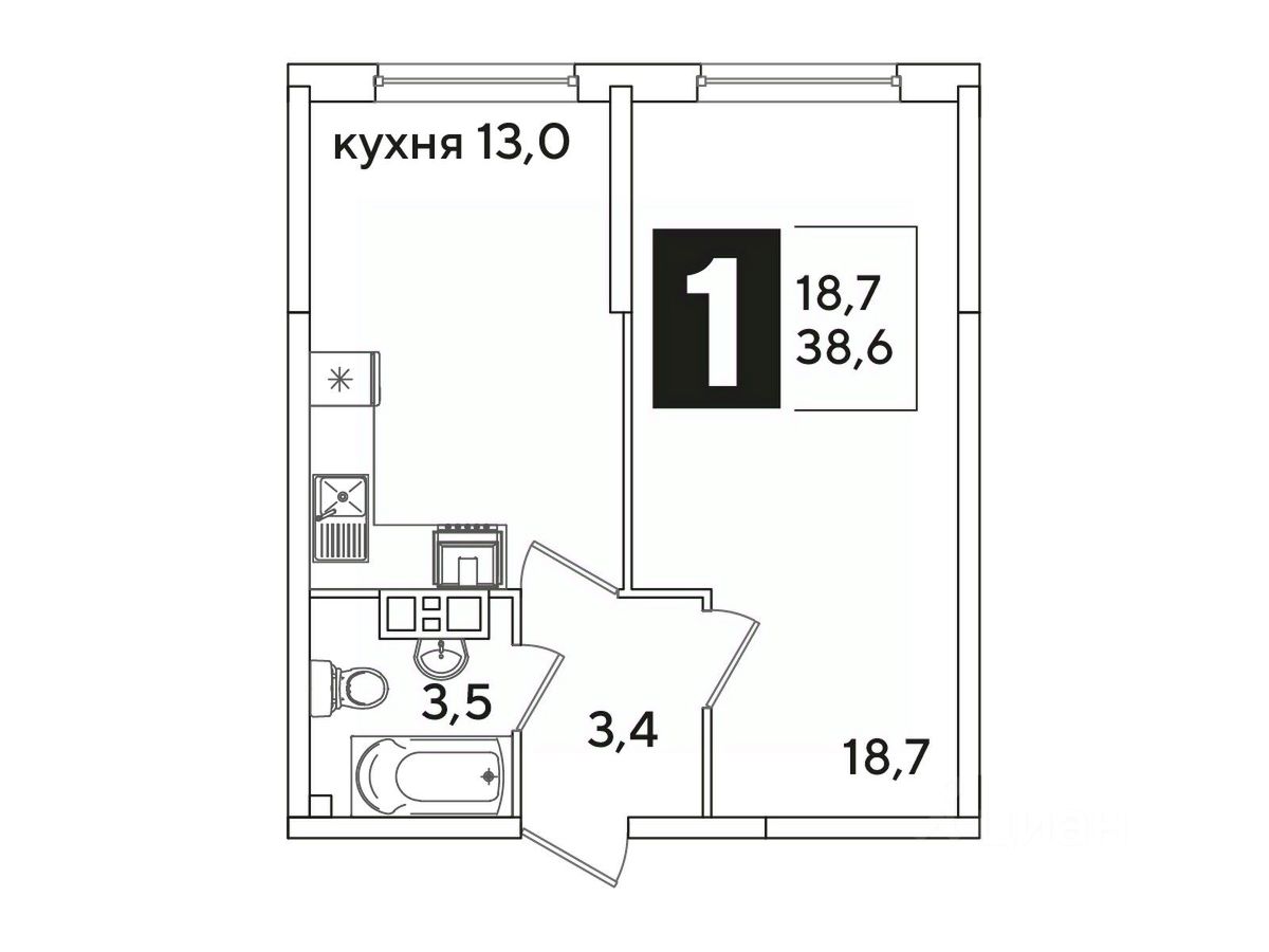 Общая площадь38,6 м²