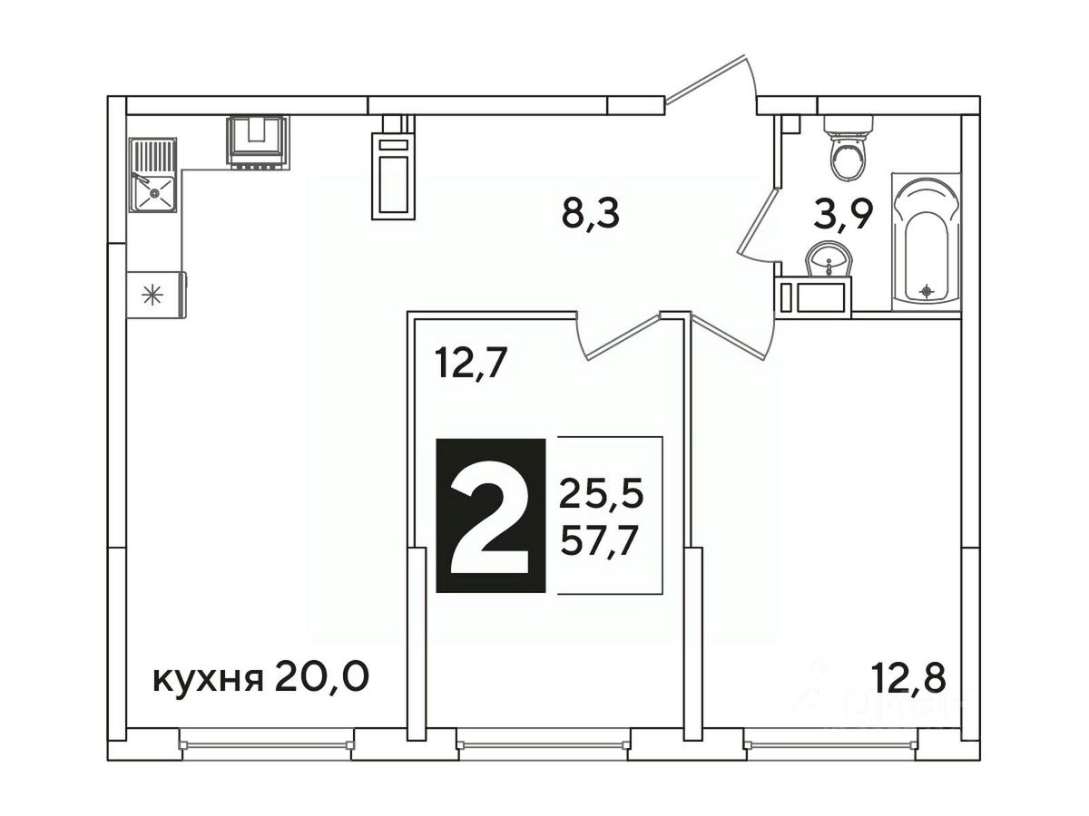Общая площадь57,7 м²